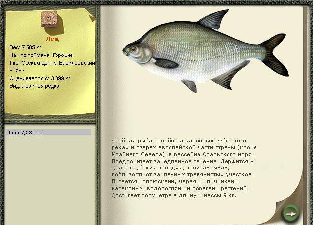Рыбное место Максимальный вес 100% Вероятность 3